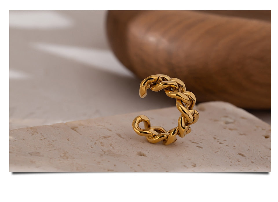 This stylish curb link ring is sure to elevate your style. It is hot trend that will look great with all of your gold jewelry, or mix it up with other metals. It is adjustable so you can choose a finger to wear it on and then change your mind with no problem!
