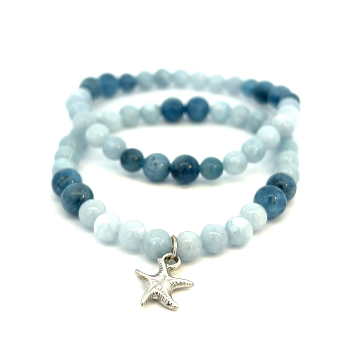 Aquamarine with Starfish Charm Stretch Bracelets Set