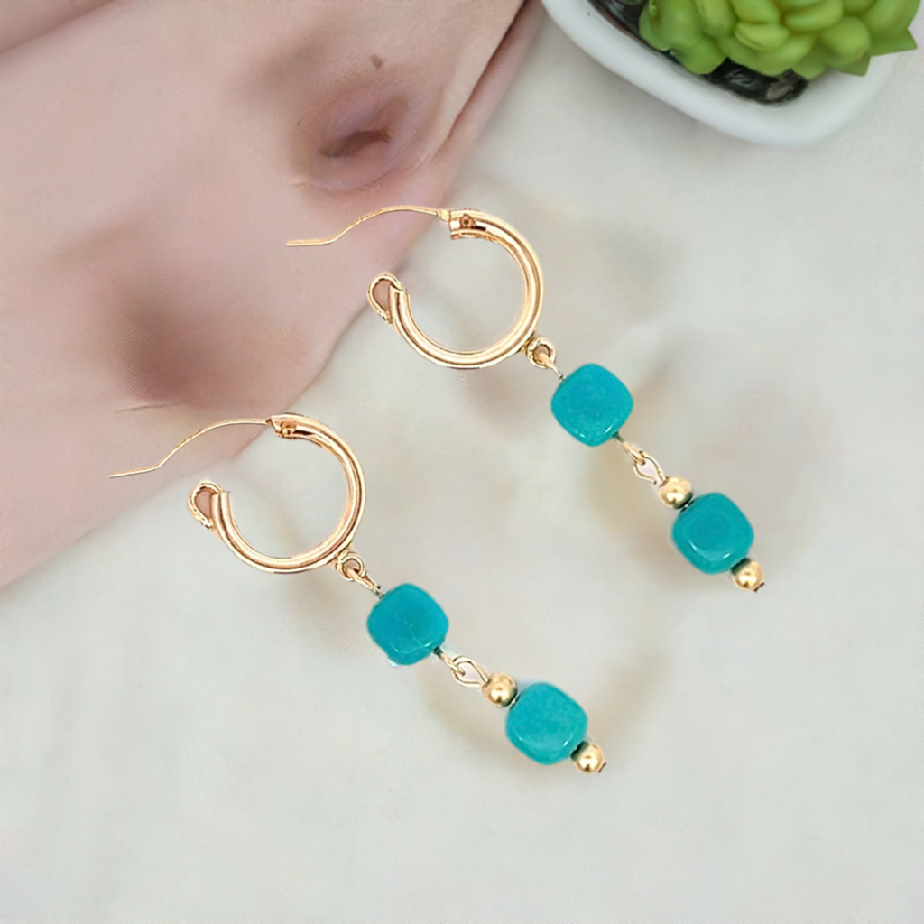 This is a gorgeous pair of Natural Gemstone Turquoise earrings on 14k Gold Filled hoops. The Square Turquoise beads were mined in Arizona and are nearly perfect with very little matrix. The Turquoise beads are about 7mm in size.