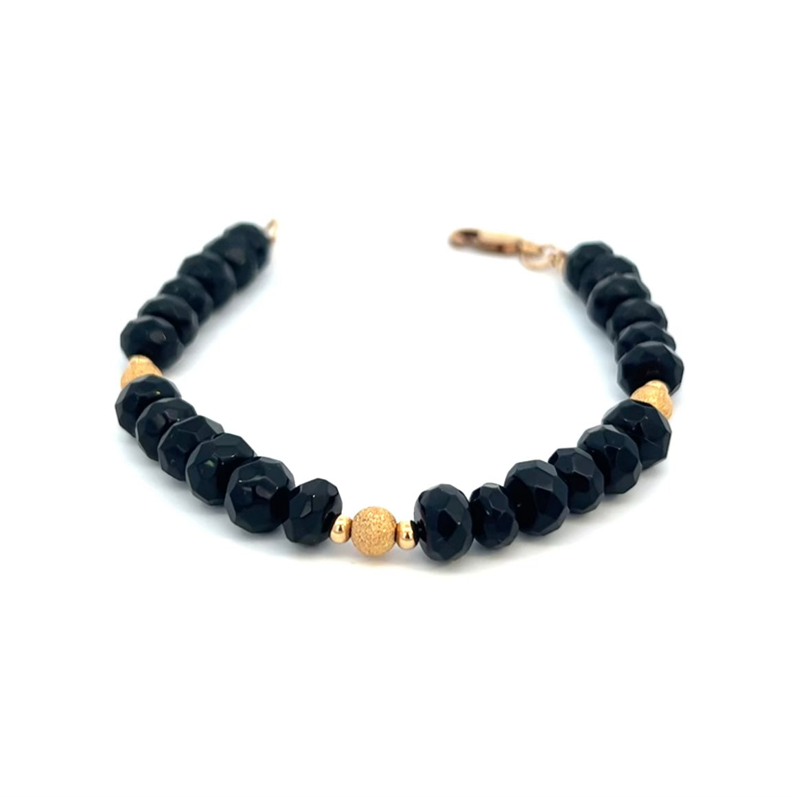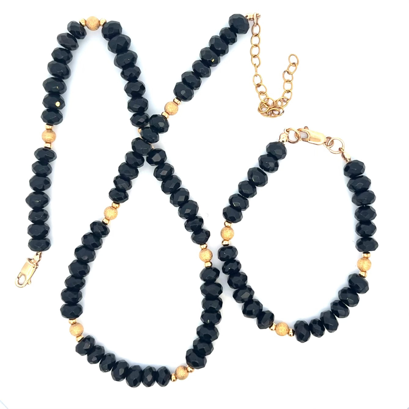 Black Gemstone Necklace and Bracelet Set 14k GF Adjustable Gold