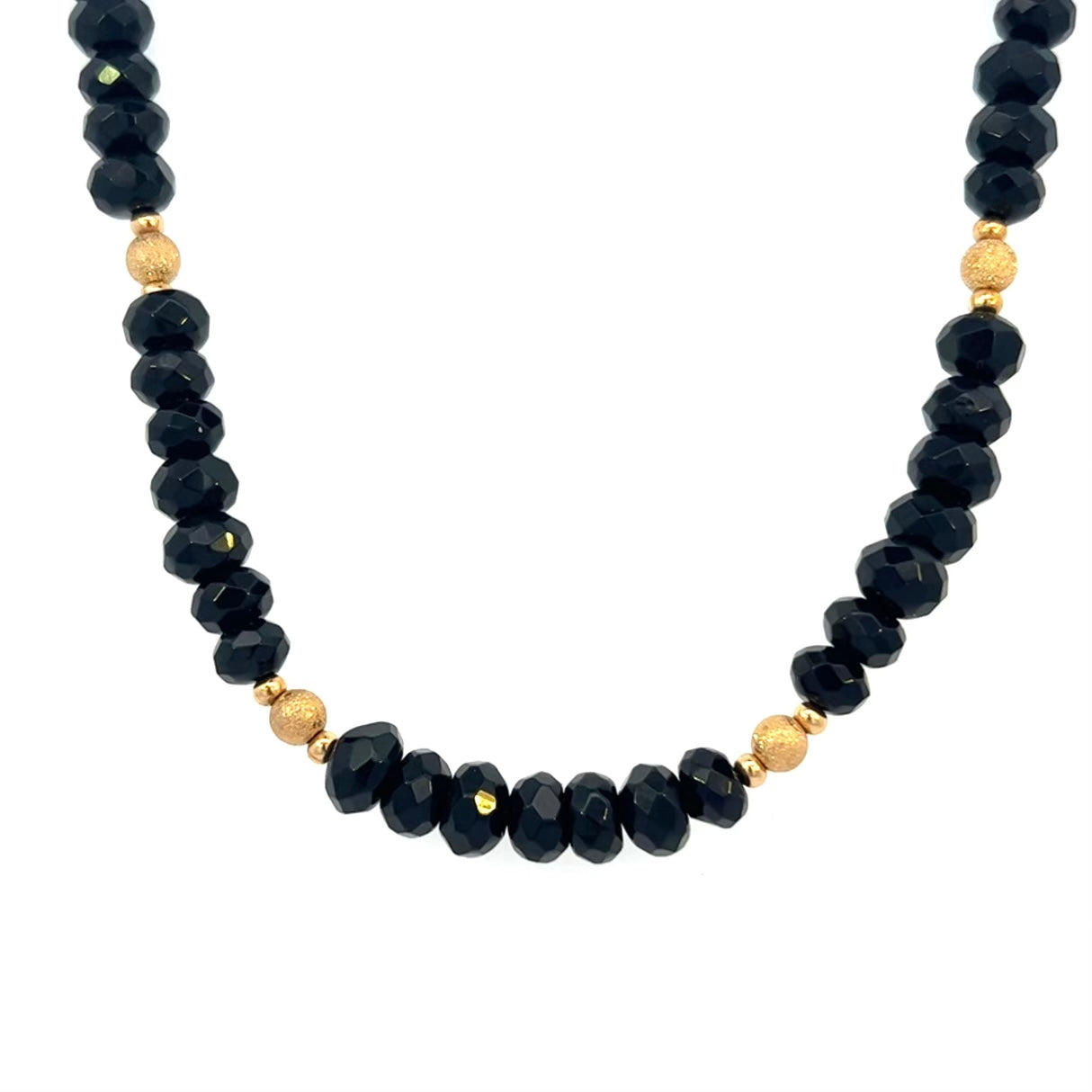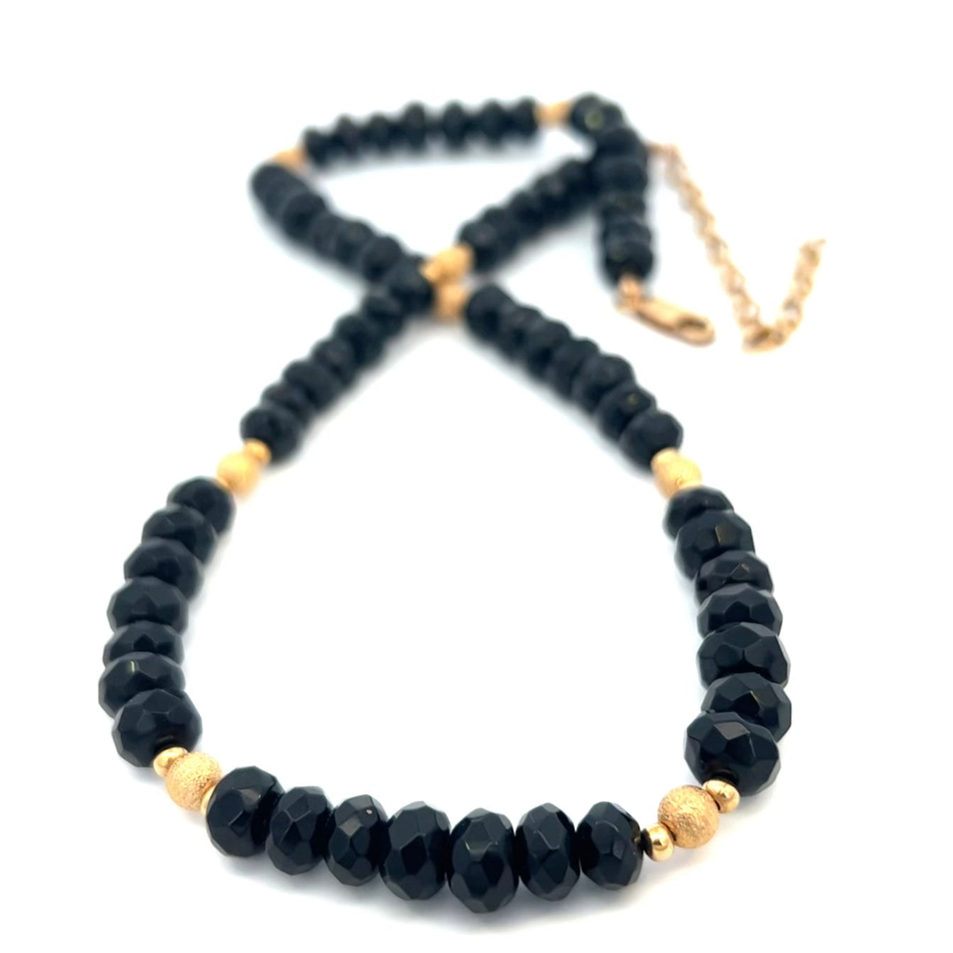 Black Gemstone Necklace Black Quartz Necklace 14kGF. This gorgeous necklace is made with black quartz gemstones and 14 k GF beads, lobster clasp and chain extender. Necklace is approximately 17-20” including the 14k gold filled lobster claw clasp and extender chain. The bracelet is 7 1/2”. This set looks quite expensive due to the beautiful natural stones and 14k gold filled beads.