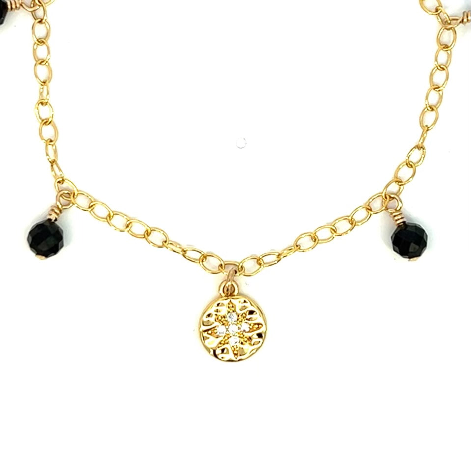 Black Spinel Bracelet with North Star Charm 14k GF Gold