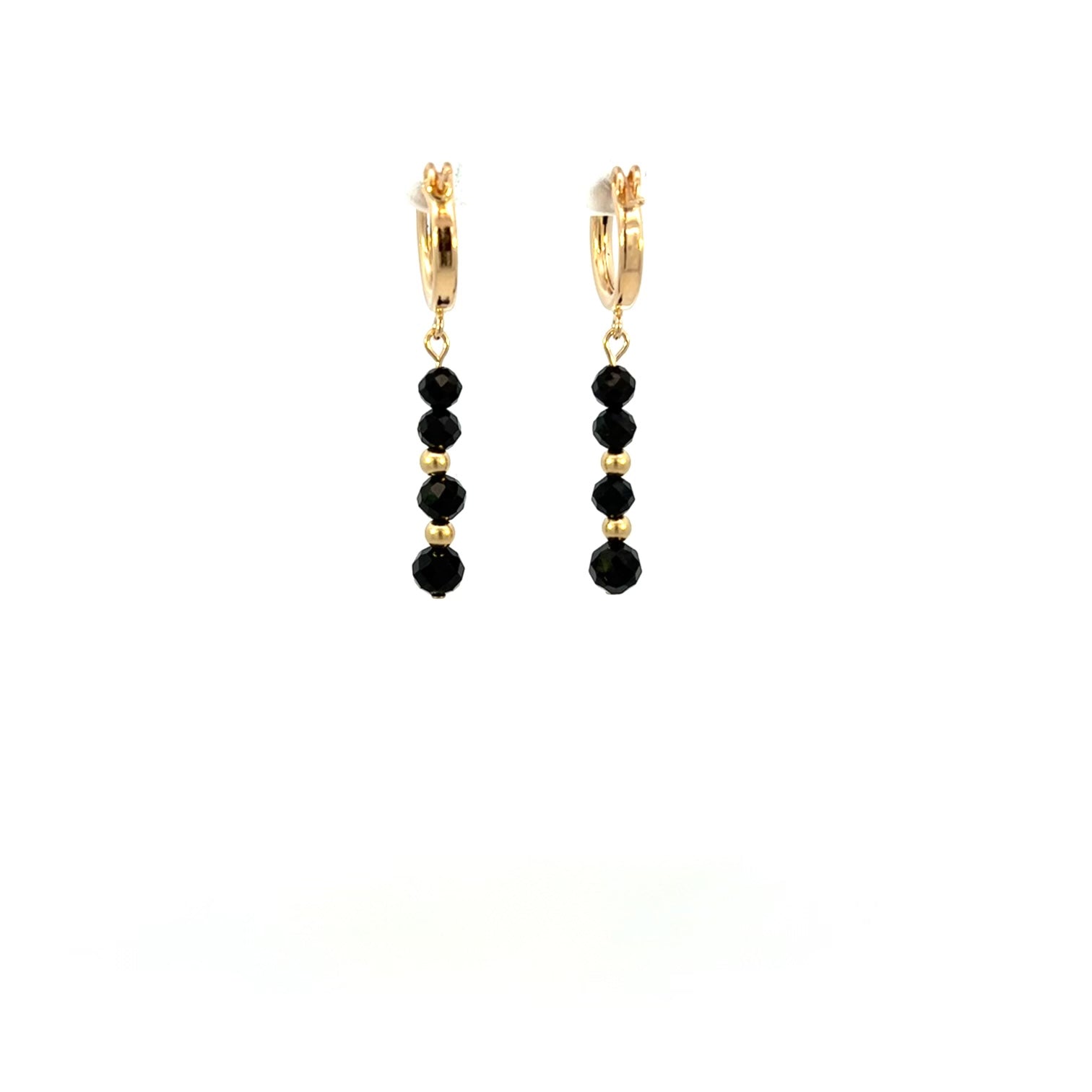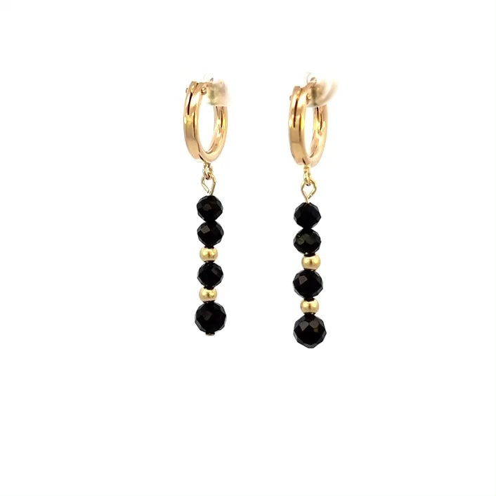 Black Spinel Huggie Hoop Drop Earrings 14K GF Gold AAA Black Spinel