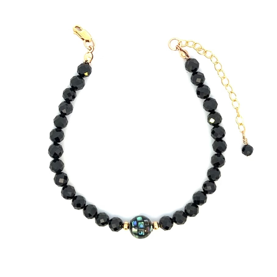 Black Spinel with Abalone Bracelet 14k GF Gold