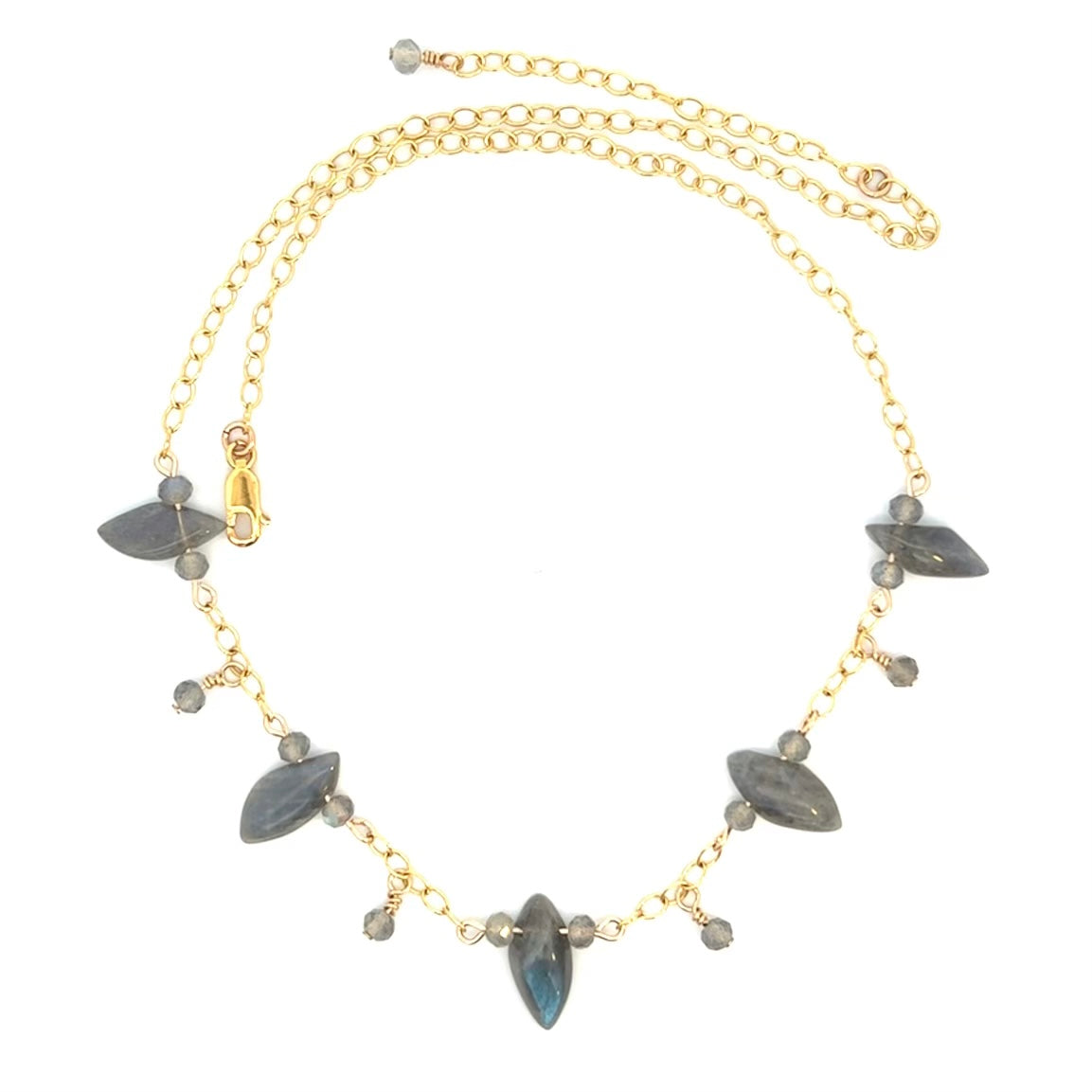 Freeform Labradorite Drop Choker Necklace 14K GF Gold