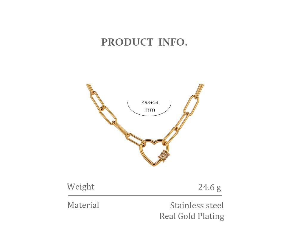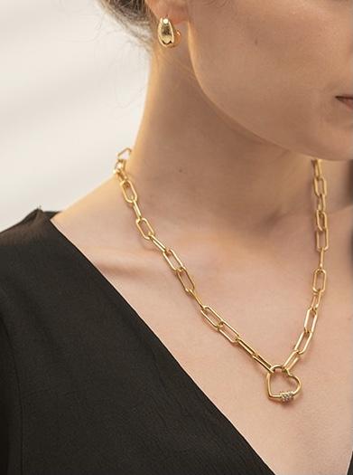 Heart Link Paperclip Necklace Gold