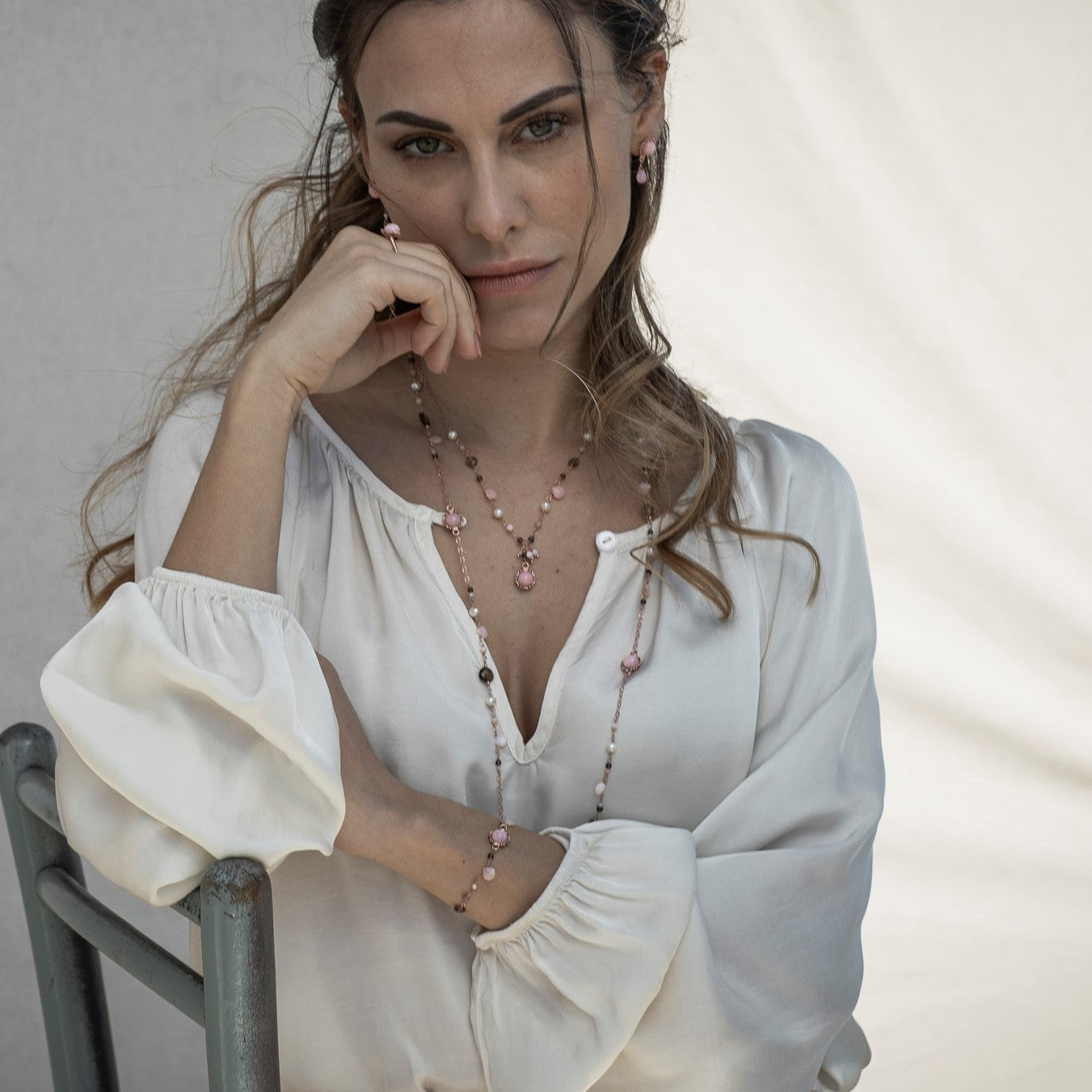 Italian Pink Opal with Smoky Quartz and Pearls Bracelet