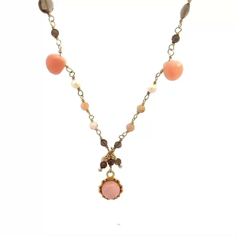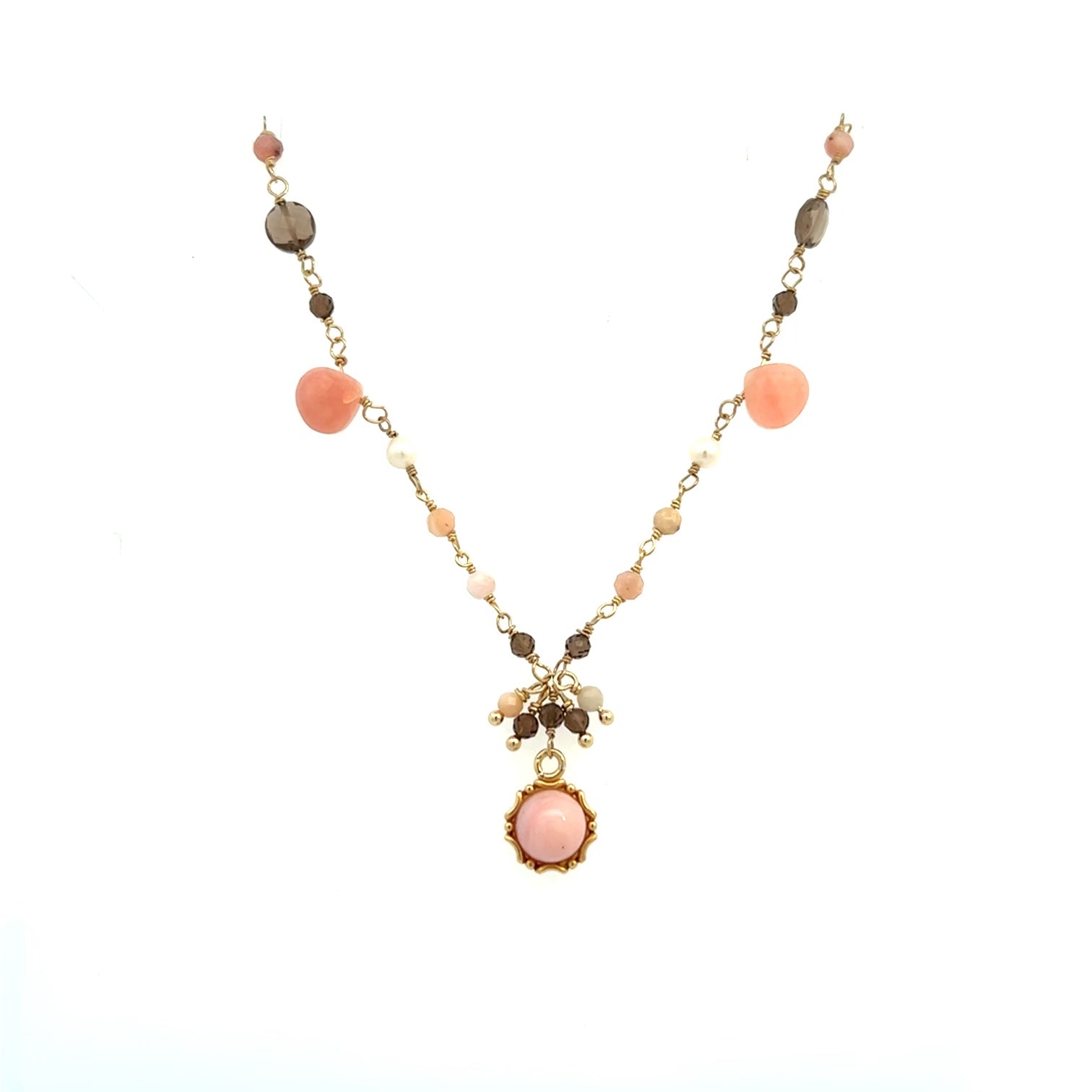Italian Pink Opal with Smoky Quartz and Pearls Necklace