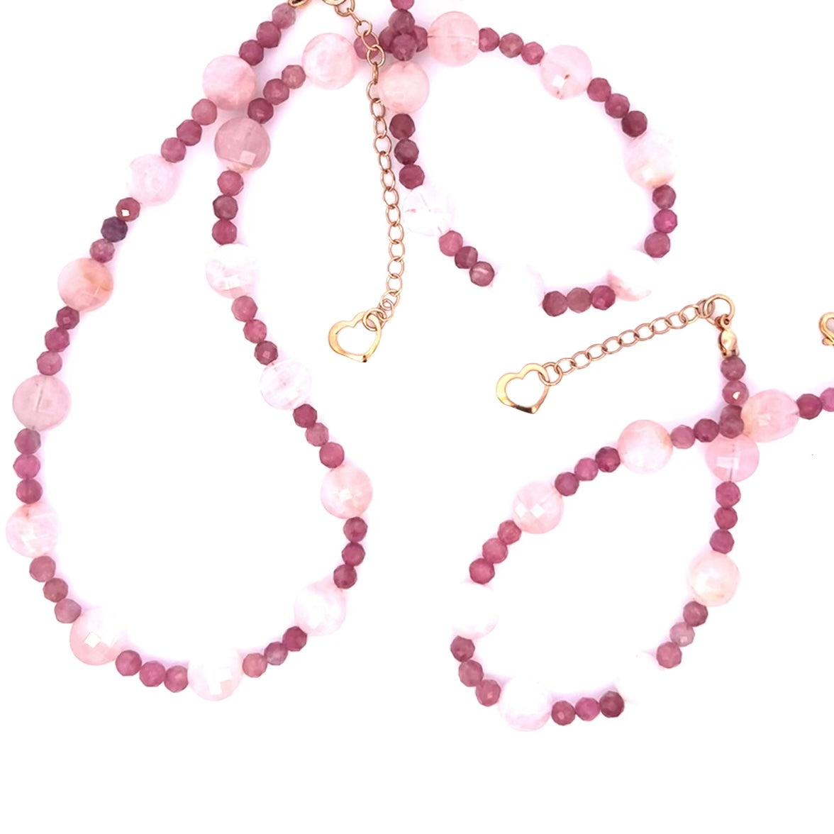 Madagascar Rose Quartz And Pink Tourmaline Necklace and Bracelet Set 14k GF Heart Charms