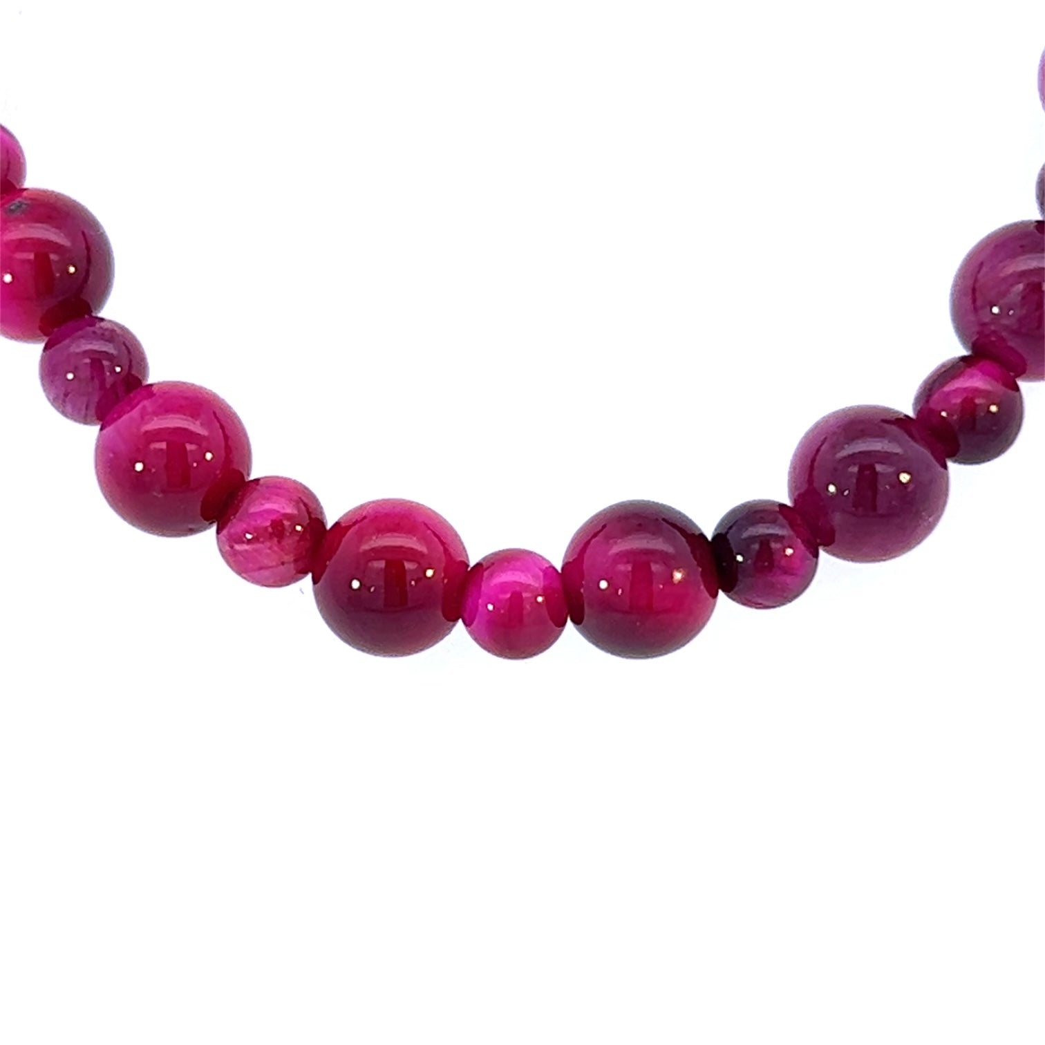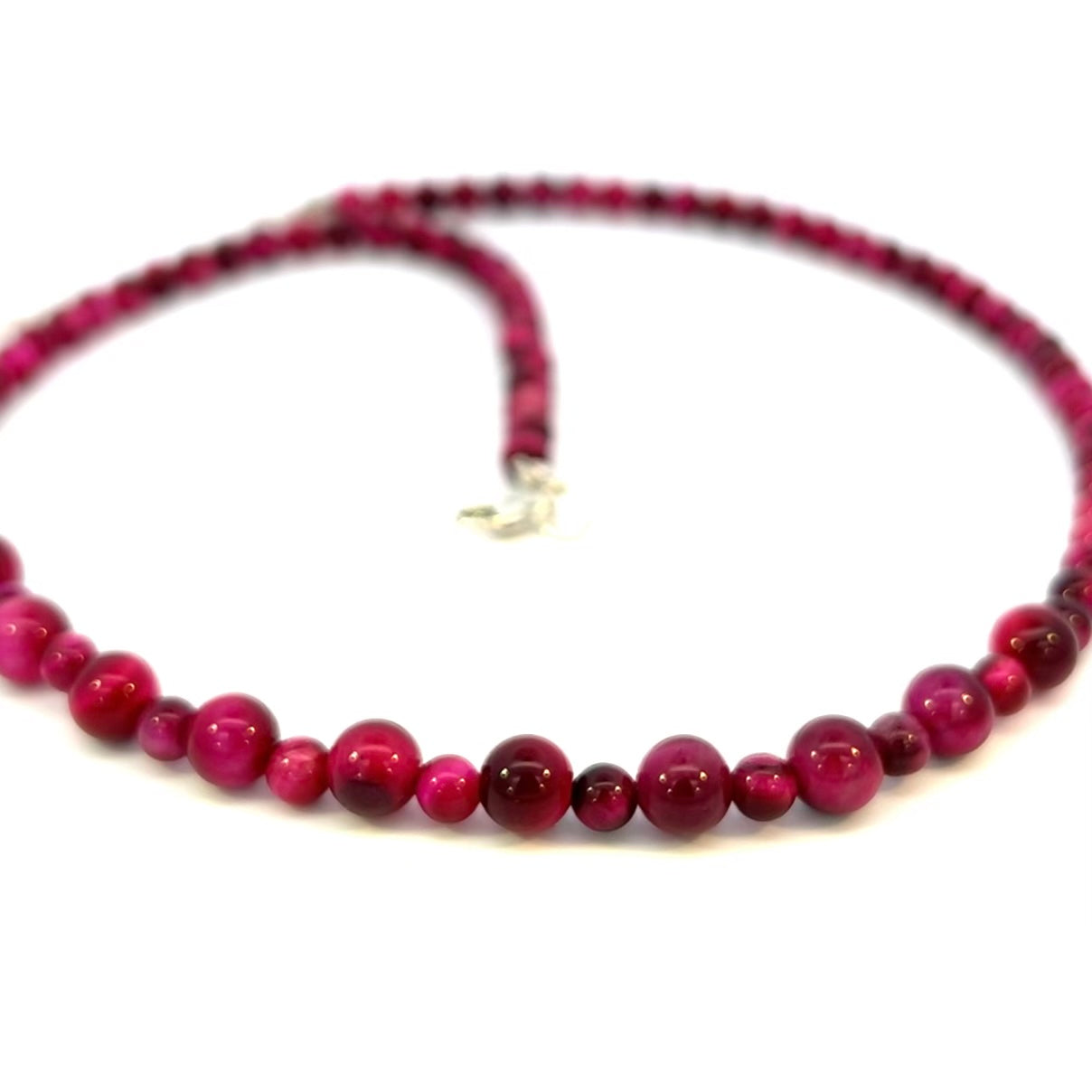Magenta Pink Tigers Eye Gemstone Choker Necklace Silver