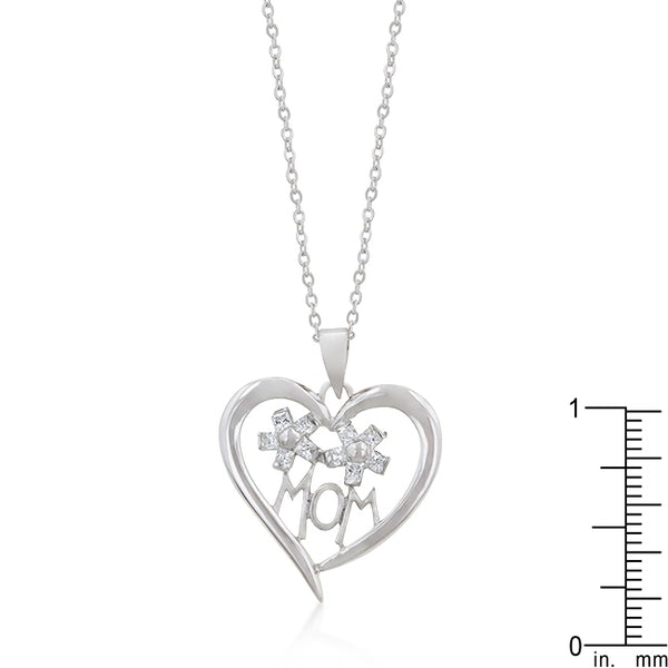 This lovely pendant necklace is the perfect way to tell mom you love her. The pendant has two sparkly flowers with MOM spelled out. This is a perfect gift for mom any time of year, Valentine's Day, Mother's Day, Mom's birthday or any occasion. Genuine Rhodium Plating is achieved using an electroplating process that coats the item with heavy layers of rhodium a close cousin to platinum which gives our jewelry a platinum luster. This is 16" + 2" extender chain.