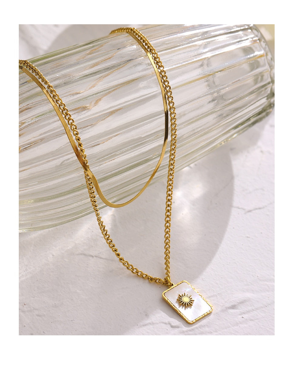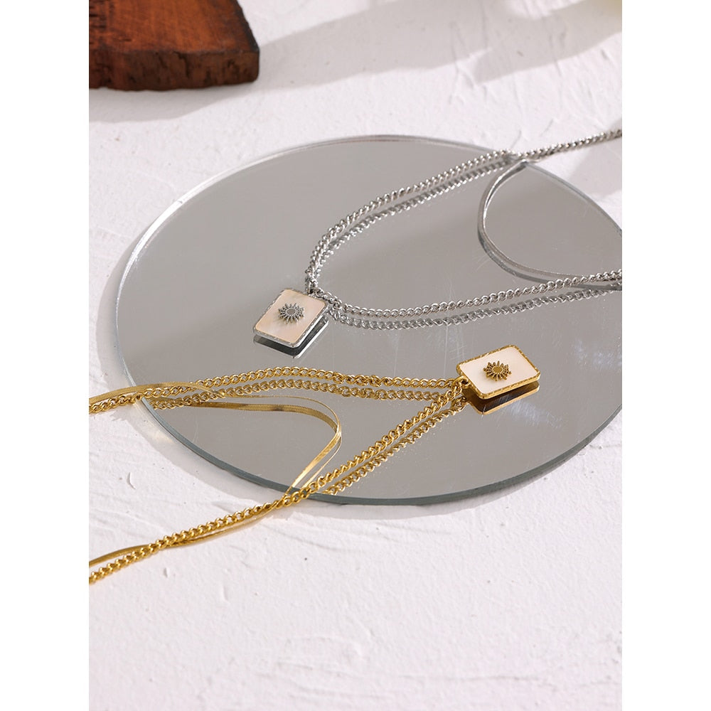 Mother of Pearl Sun Pendant Layered Necklace Silver