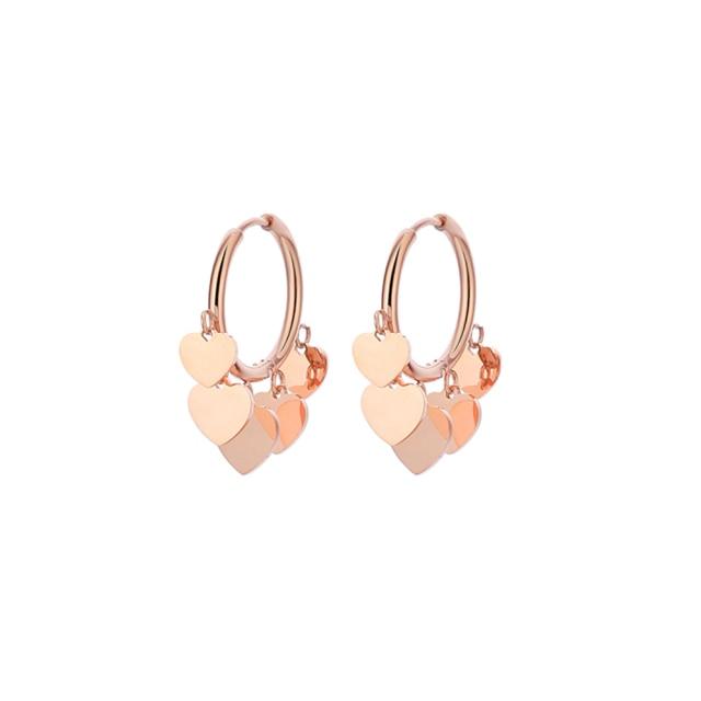 Multi Mini Heart Charm Dangle Hoop Earrings Rose Gold