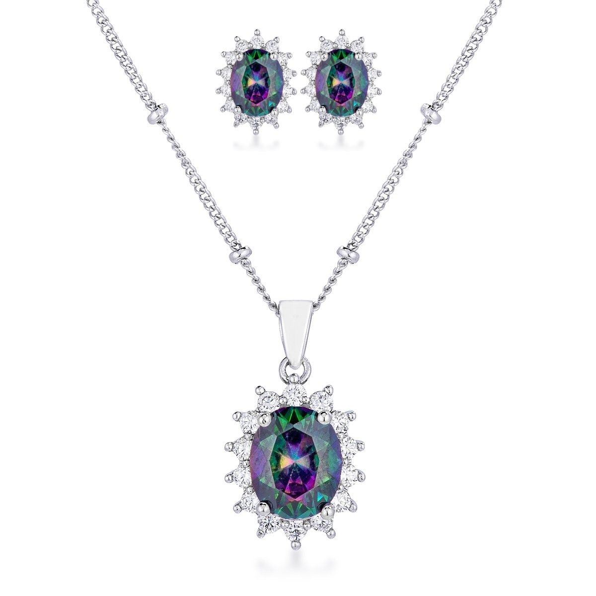 Mystic Stone Oval Pendant Necklace and Earrings Set