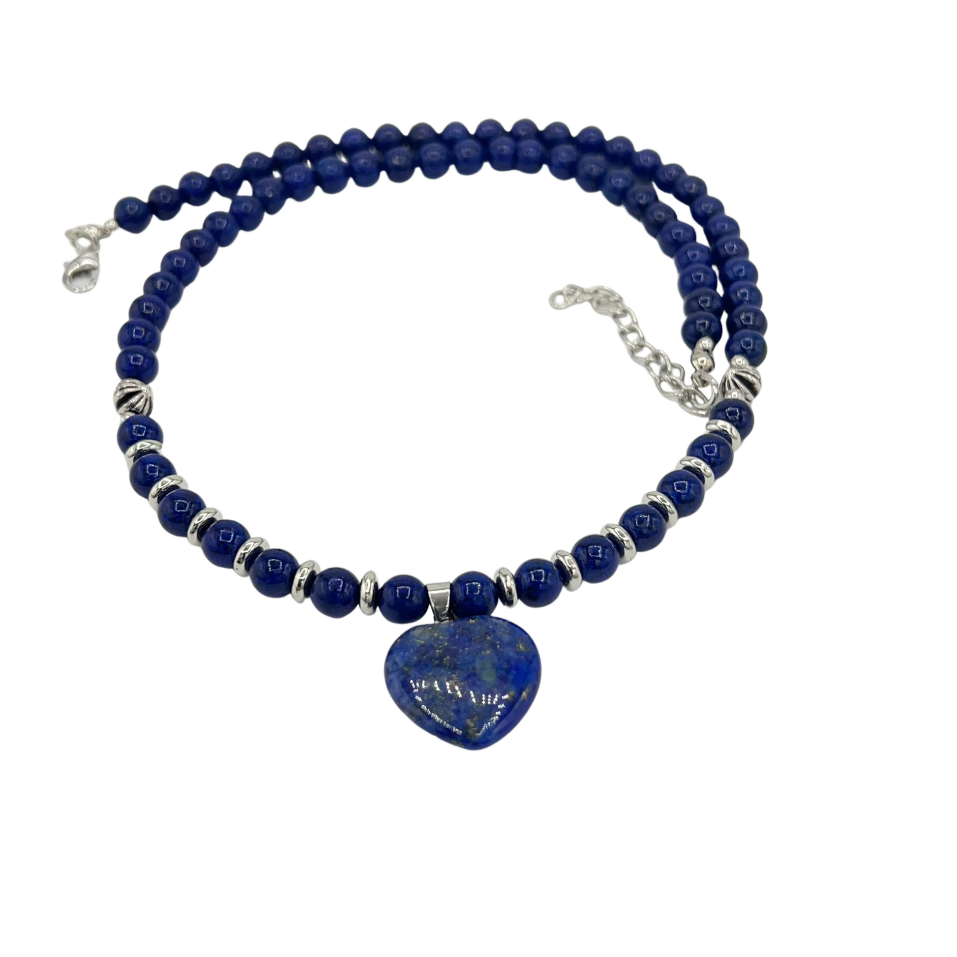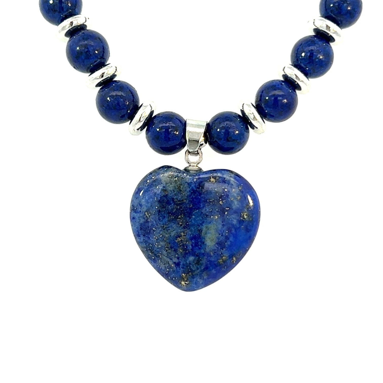 Natural Blue Lapis Lazuli Necklace With Heart Pendant Silver