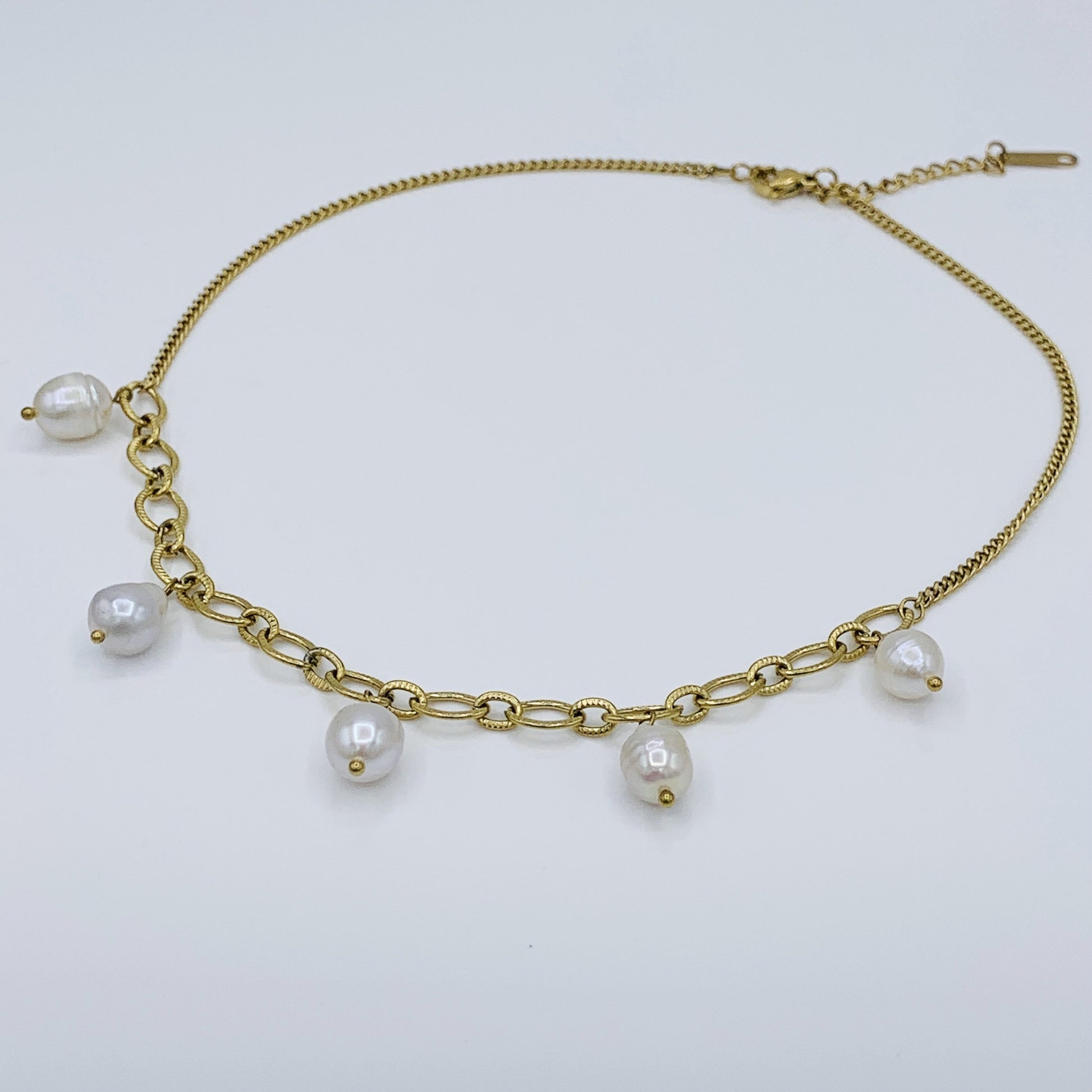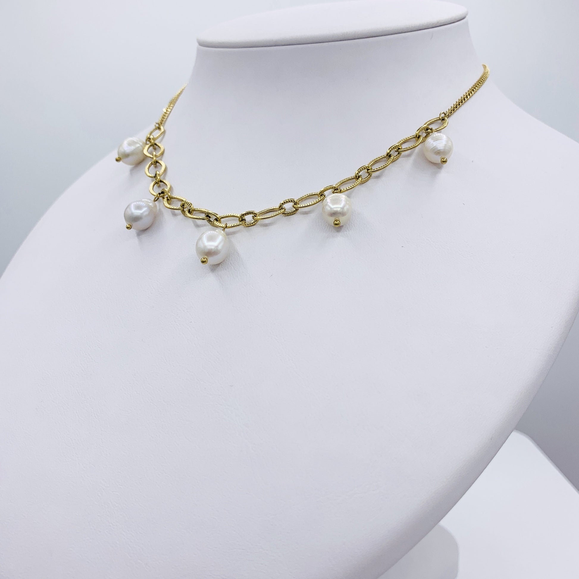 Natural Pearl Choker Necklace on Mixed Chain
