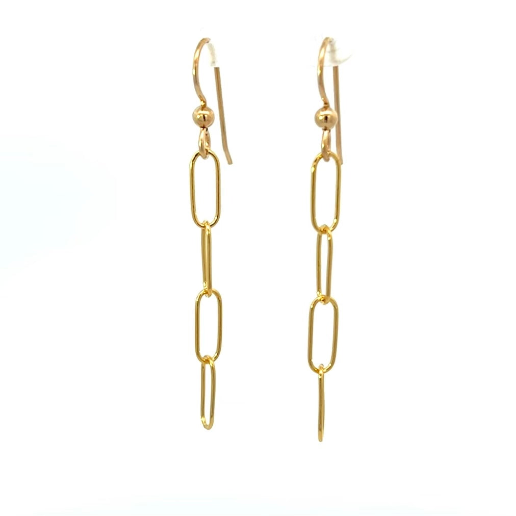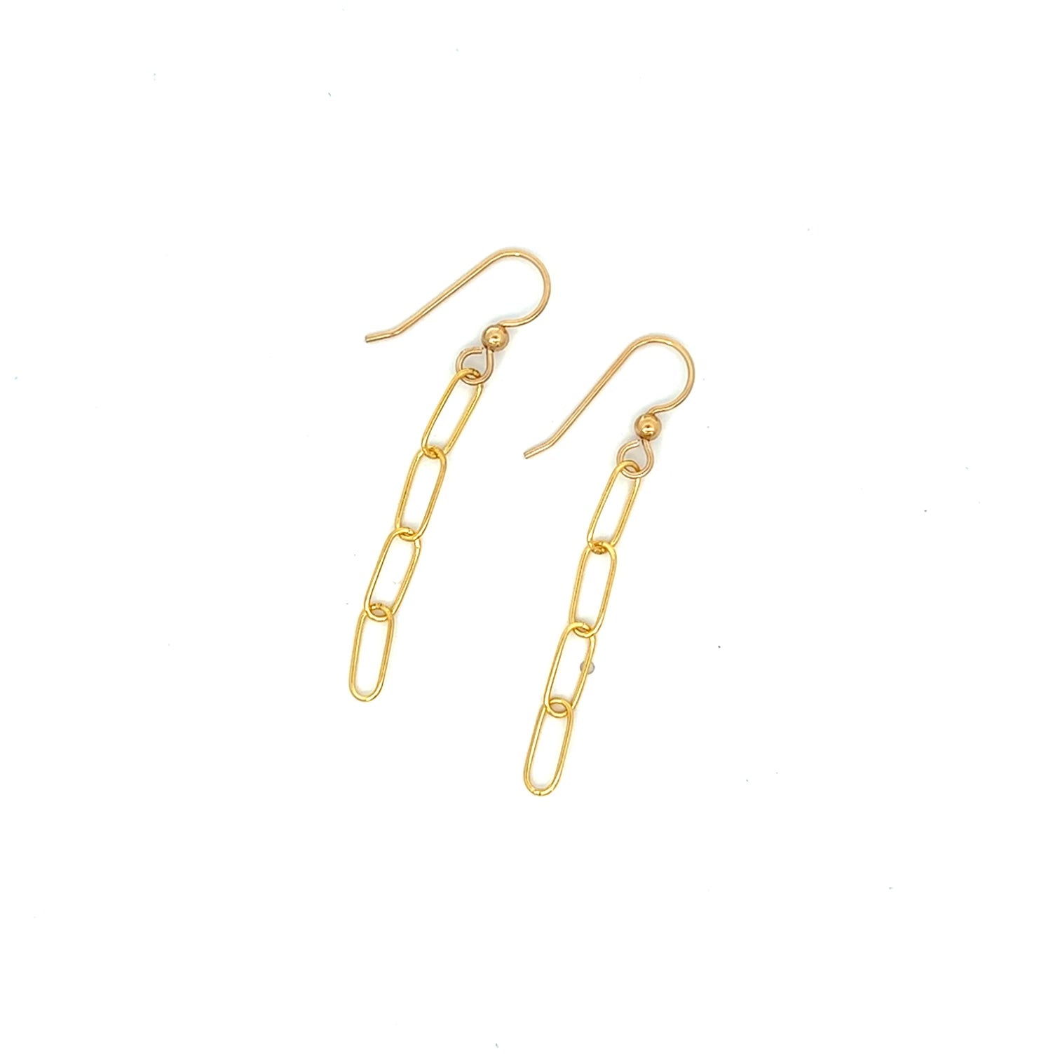 These are a fabulous pair of 14k gold filled Paperclip chain earrings with shepherd hooks. These are about 2 1/4” long with silicone backs for comfort. Enjoy the beauty and long wear of 14k gold with these stylish gold filled earrings.
