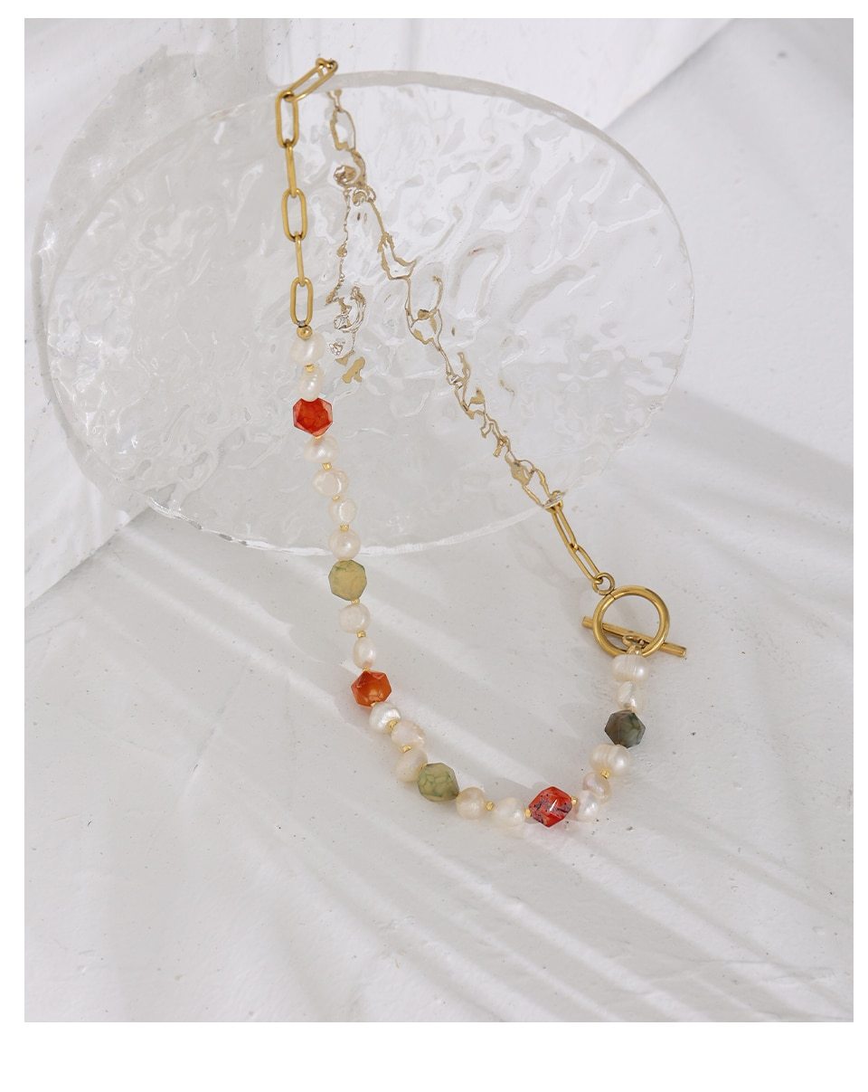 Pearl and Gemstone Asymmetric Toggle Necklace