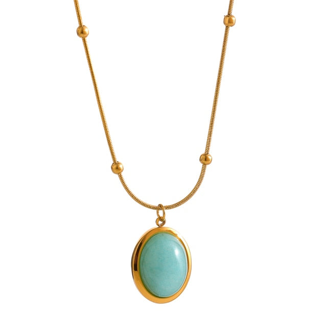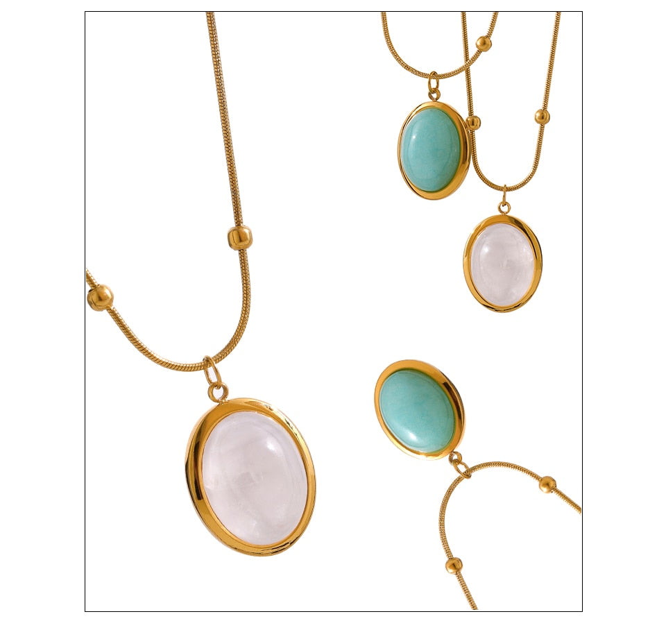 White Oval Pendant Necklace in Gold