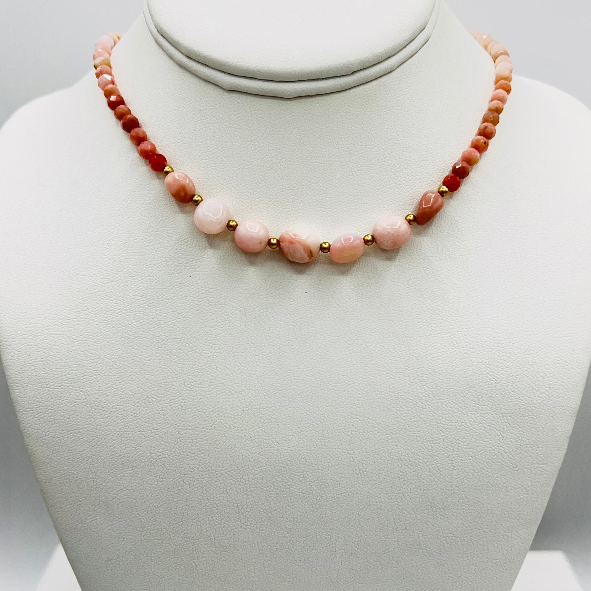 Peruvian Pink Opal Nugget and Bead Necklace 14k GF