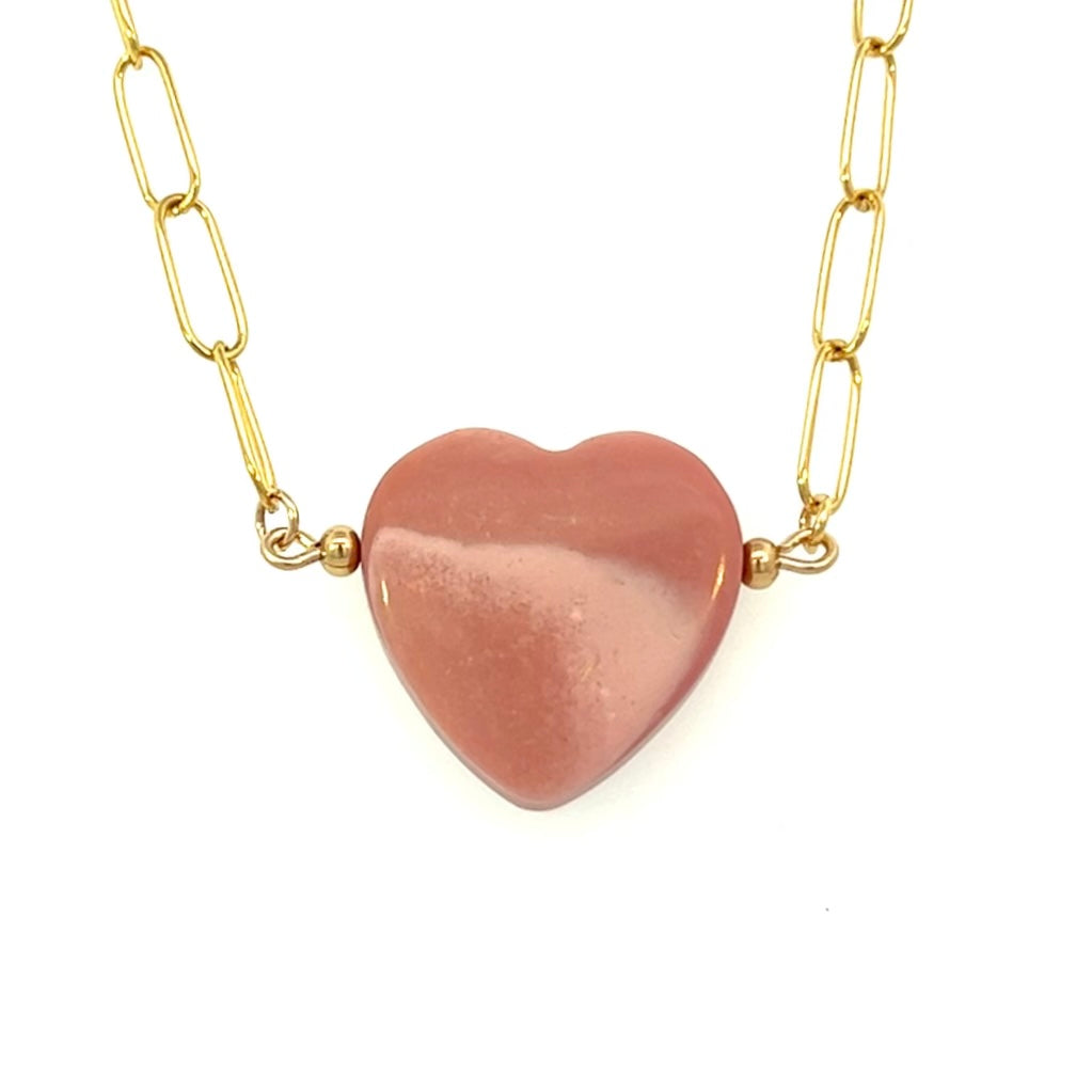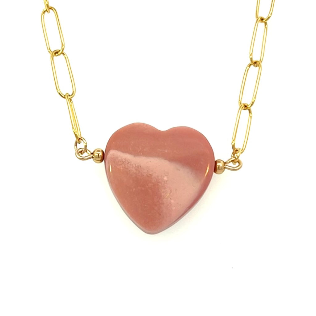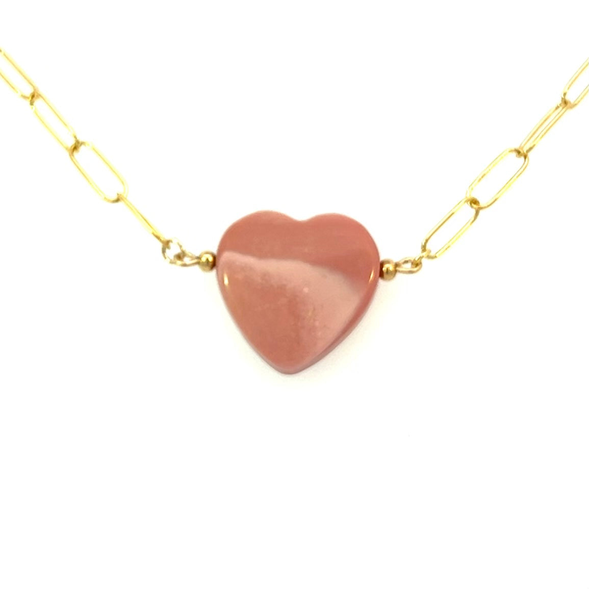 Pink Opal Heart Pendant On Paperclip Chain Necklace 14k GF Gold
