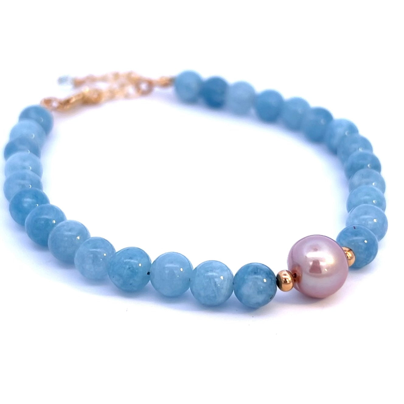 Sky Blue Aquamarine and Pearl Bracelet 14k GF